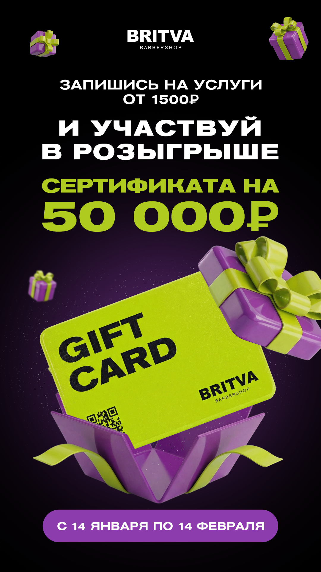- Записаться на услуги свыше 1500 в период с 14 января по 14 февраля включительно (услуги в